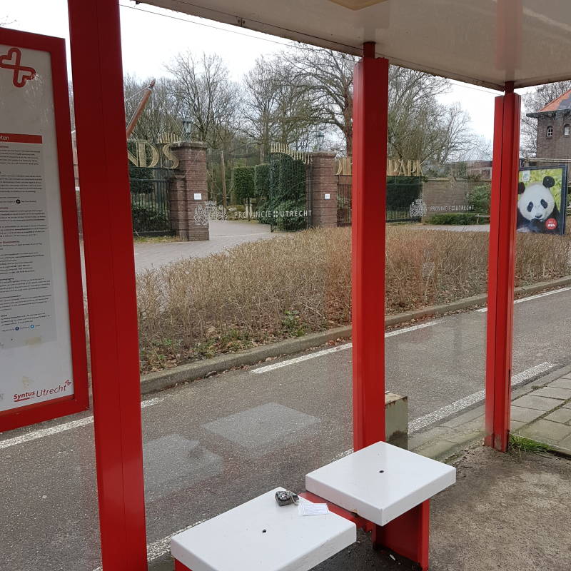 in het bushokje van Syntus, voor Ouwehands Dierenpark, gelegen aan Grebbeweg 111