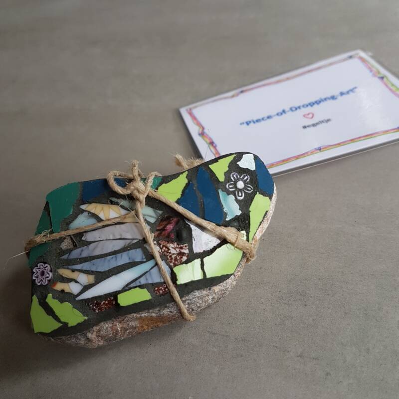 En bij elk ervan een mozaïeksteen die ik weer als "Piece-of-Dropping-Art" zou gaan droppen voor een Eerlijke Vinder, bij elkaar 20 stenen dus.