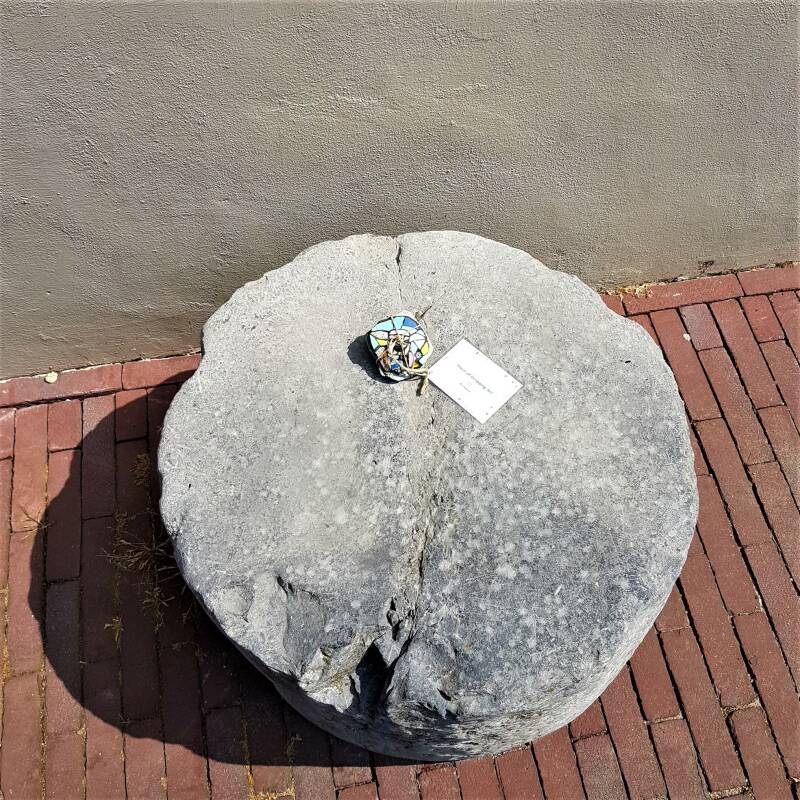 Op een stenen pilaar onderaan het trapje bij de kerk...in de Nederstraat.