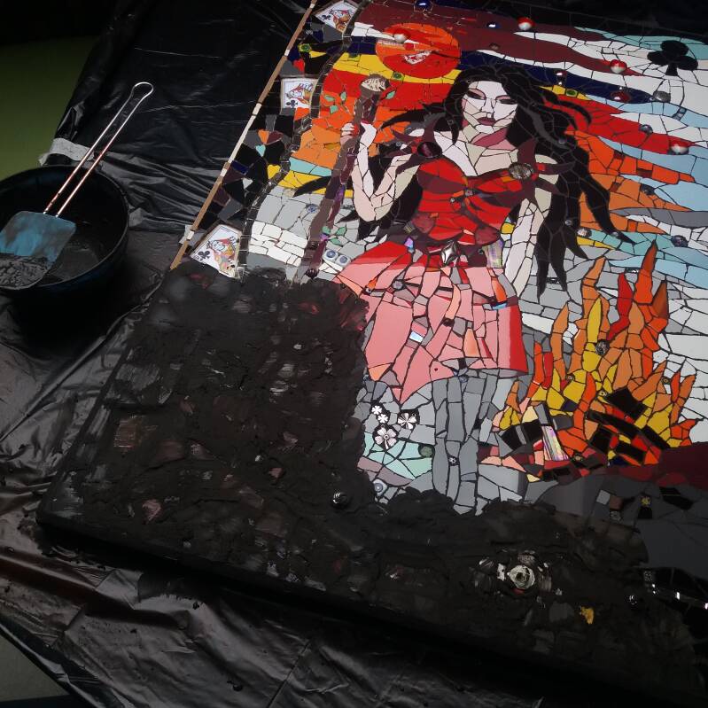 Hieronder foto's van de opzet en het verloop van het mozaïeken van "Argine"