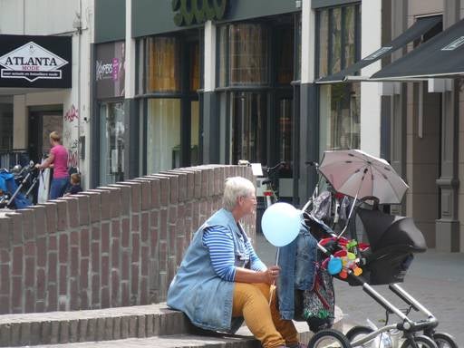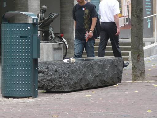 Tussen de voeten van het standbeeld van de Omroeper